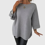 Ez a laza szabású pulóver ötvözi az eleganciát a mindennapi bájjal. Tiszta dekoltázsa, gombos ujja és laza sziluettje univerzális elemmé teszi rétegezéshez vagy önálló viseléshez.