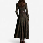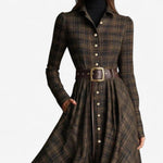 A Sára ruha időtlen női bájt ötvöz modern kifinomultsággal. Puha, strukturált anyagból készült, áramló kockás mintával, amely elegánsan kiemeli a derekat egy egyedi övvel, ami minden alakot előnyösen formál. Hosszú, testhezálló szabása és gombos záródása nyugodt magabiztosságot sugall: a klasszikus kifinomultság és a kortárs báj természetes keveréke.