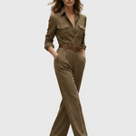 Fitt szabás, amely kiemeli a derekat és kényelmet biztosít mozgás közben.