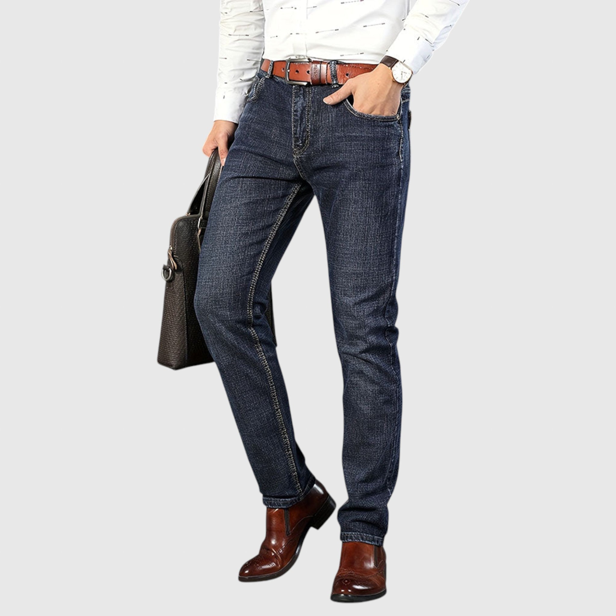 A Milan Farmer férfiak számára készült, akik értékelik a tartós megbízhatóságot modern árnyalatban. Prémium farmer anyagból készült, strukturált, de kényelmes szabással rendelkezik - tökéletes mindennapi viseletre, informális sétákra vagy elegáns inggel való kombinálásra.