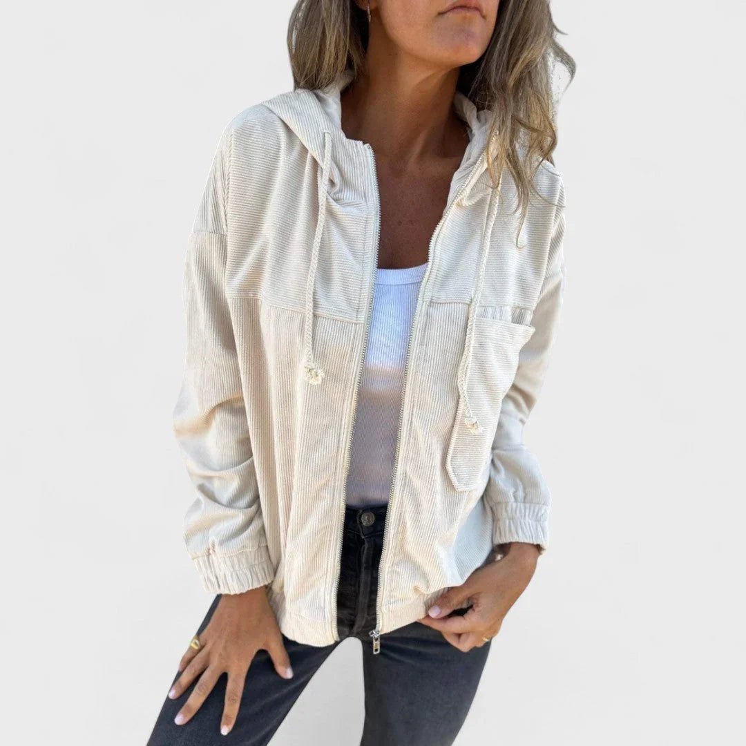 Pavla - Bársony kabát kapucnival és cipzárral