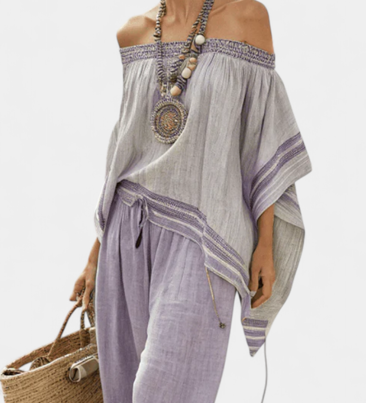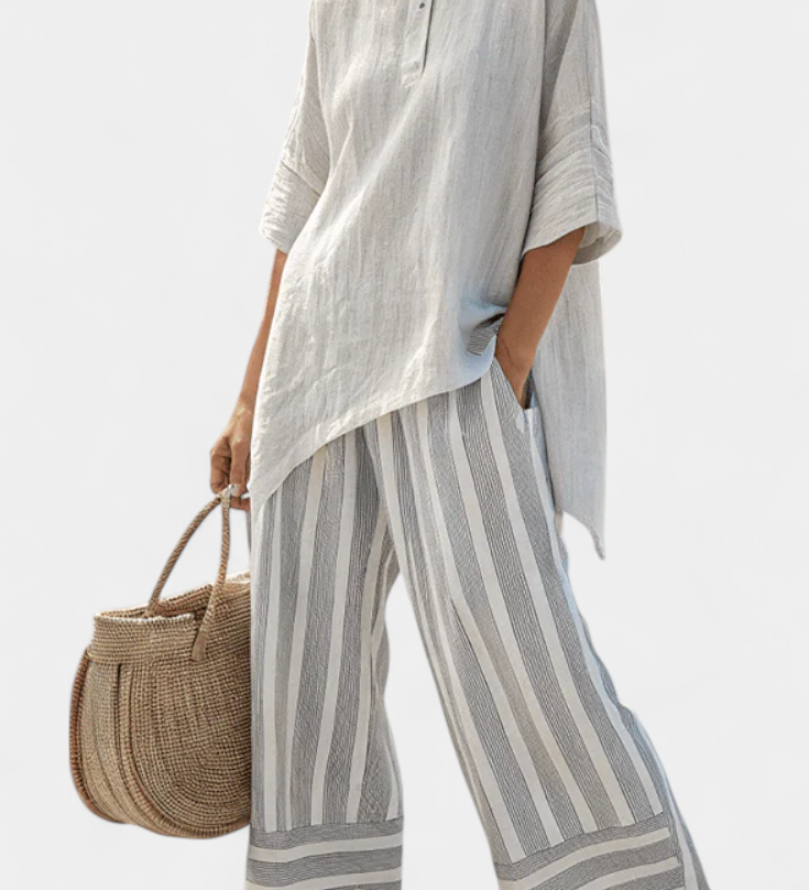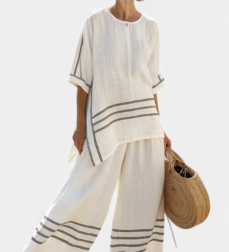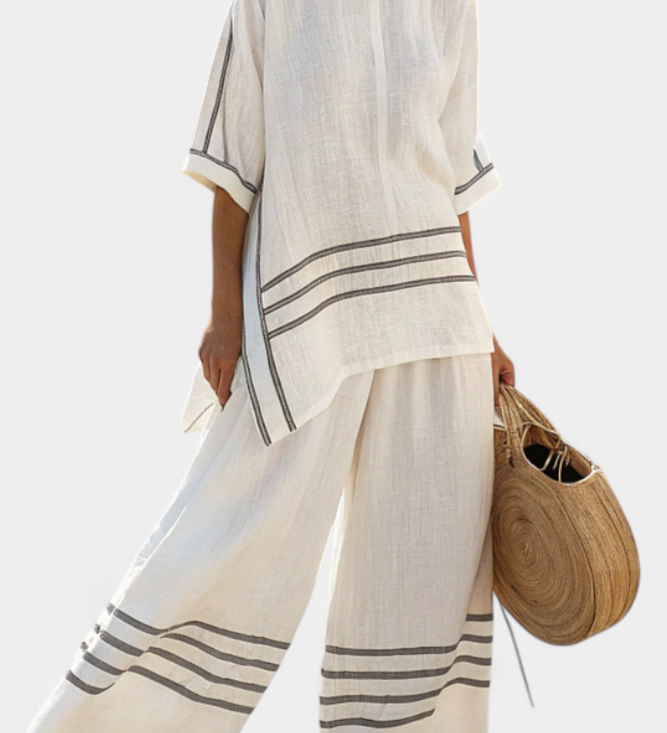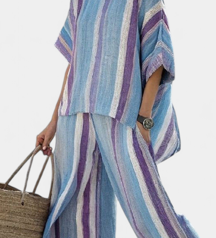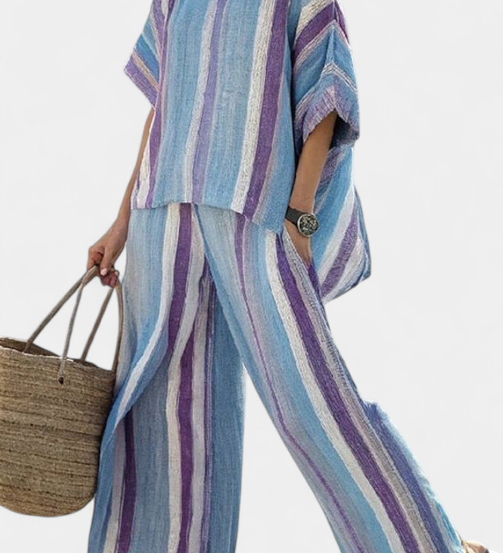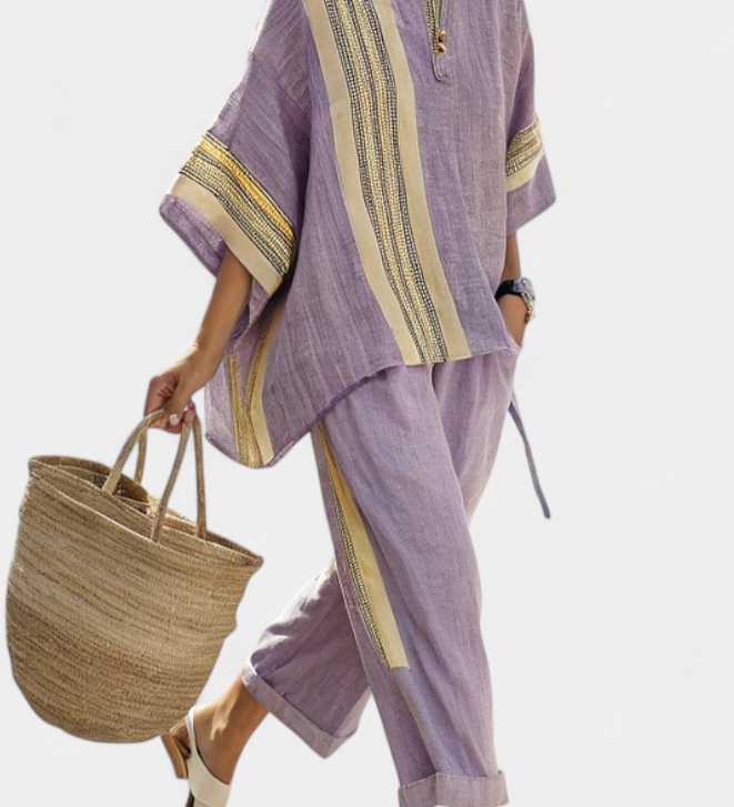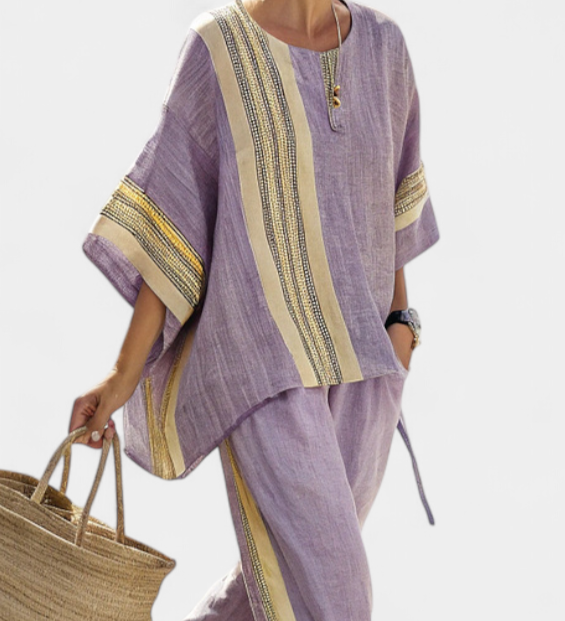 Len-bambusz szett bájos levendulával és sárga csíkkal