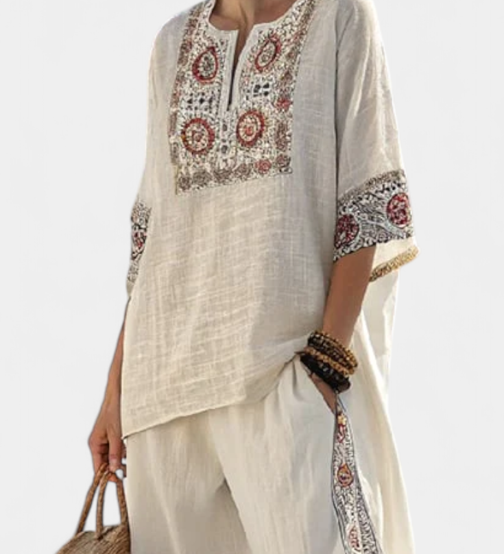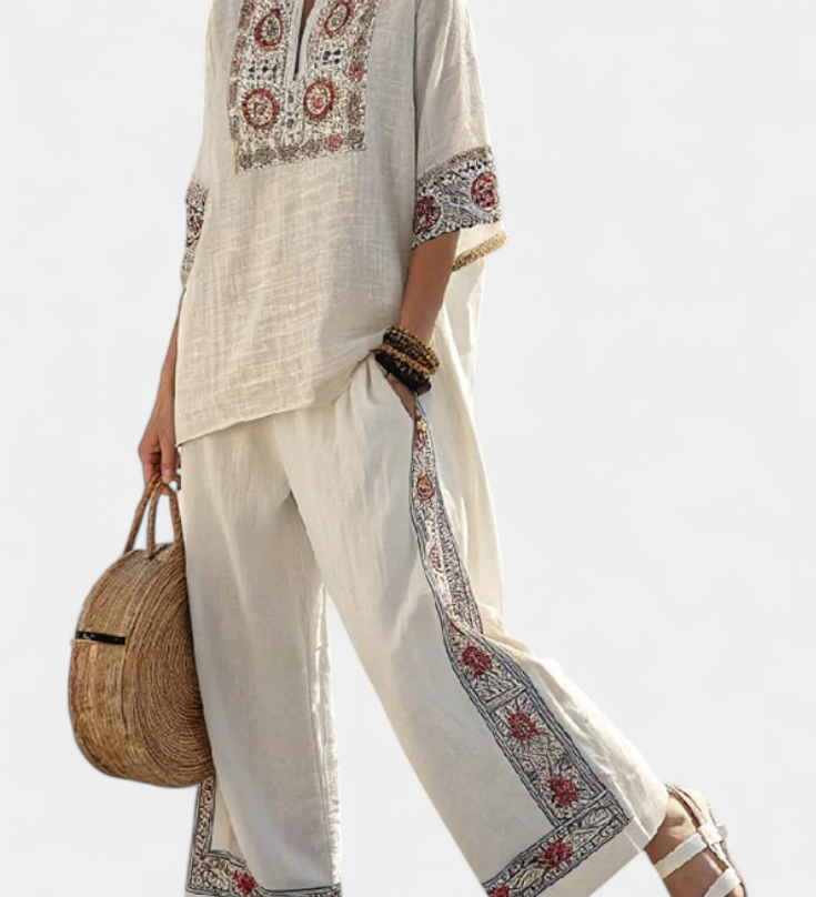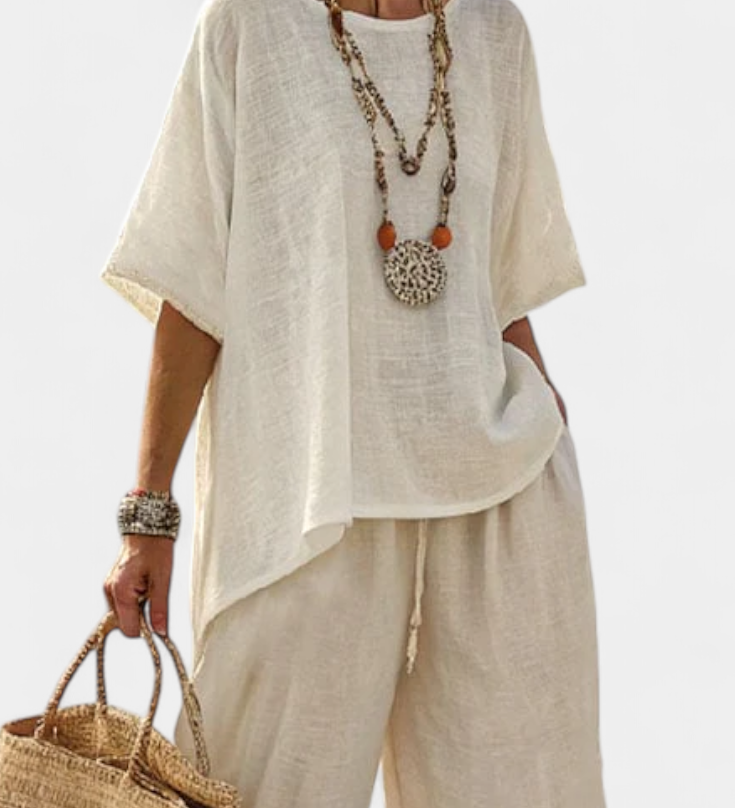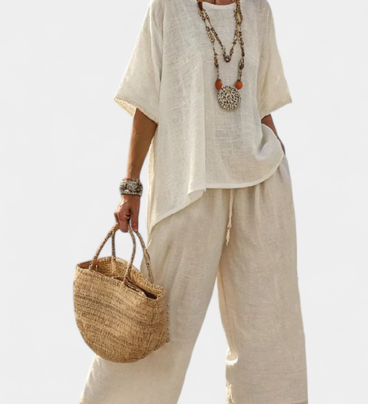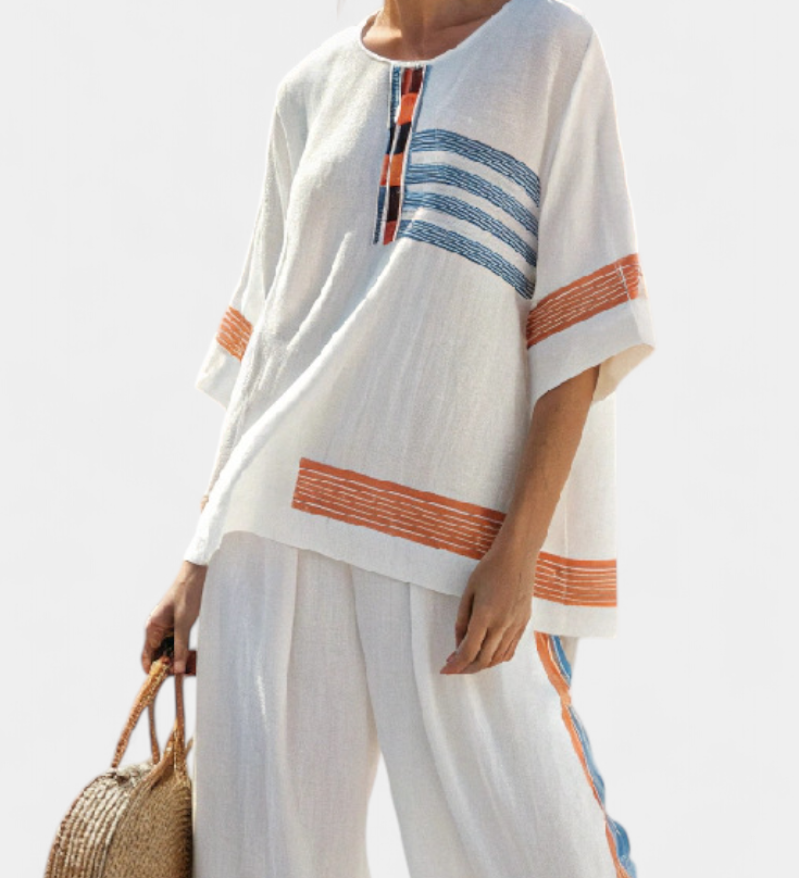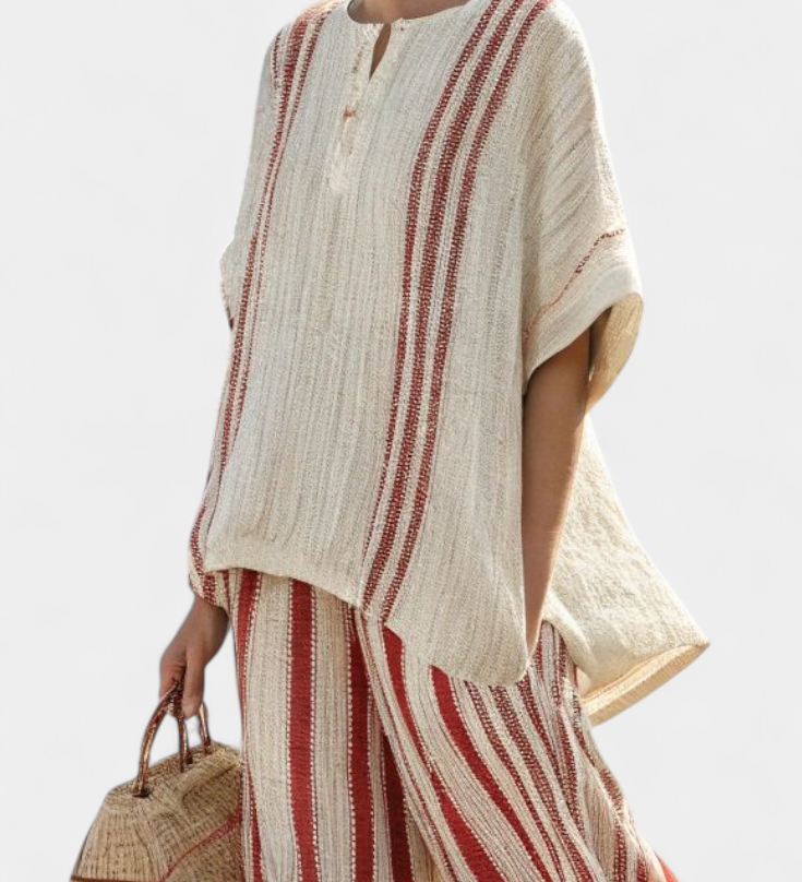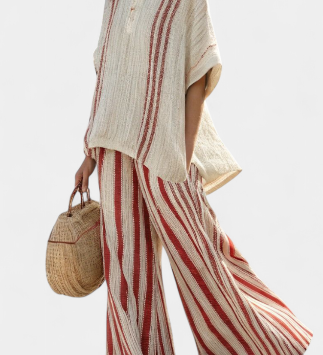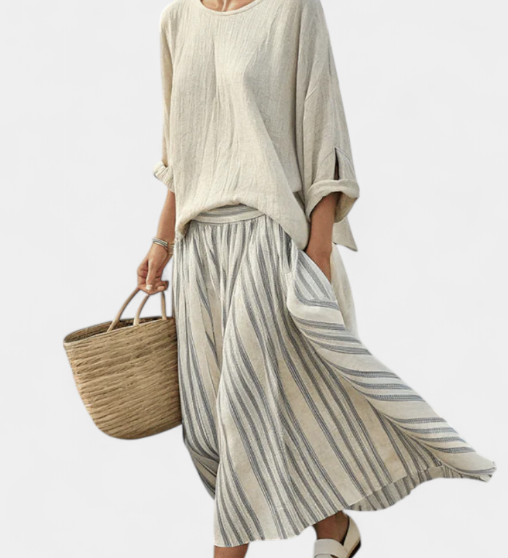 Len-bambusz szett bájos levendulával és sárga csíkkal