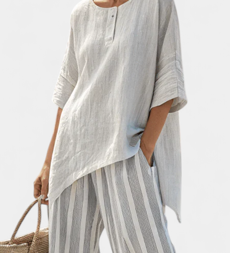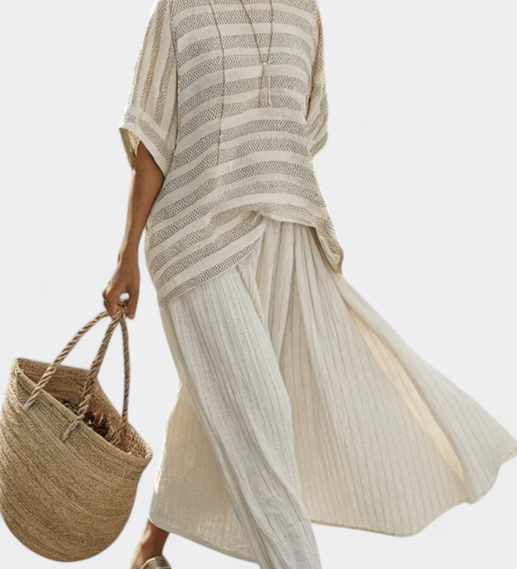 Széles csíkos, aszimmetrikus szabású overall - modern és kényelmes stílus