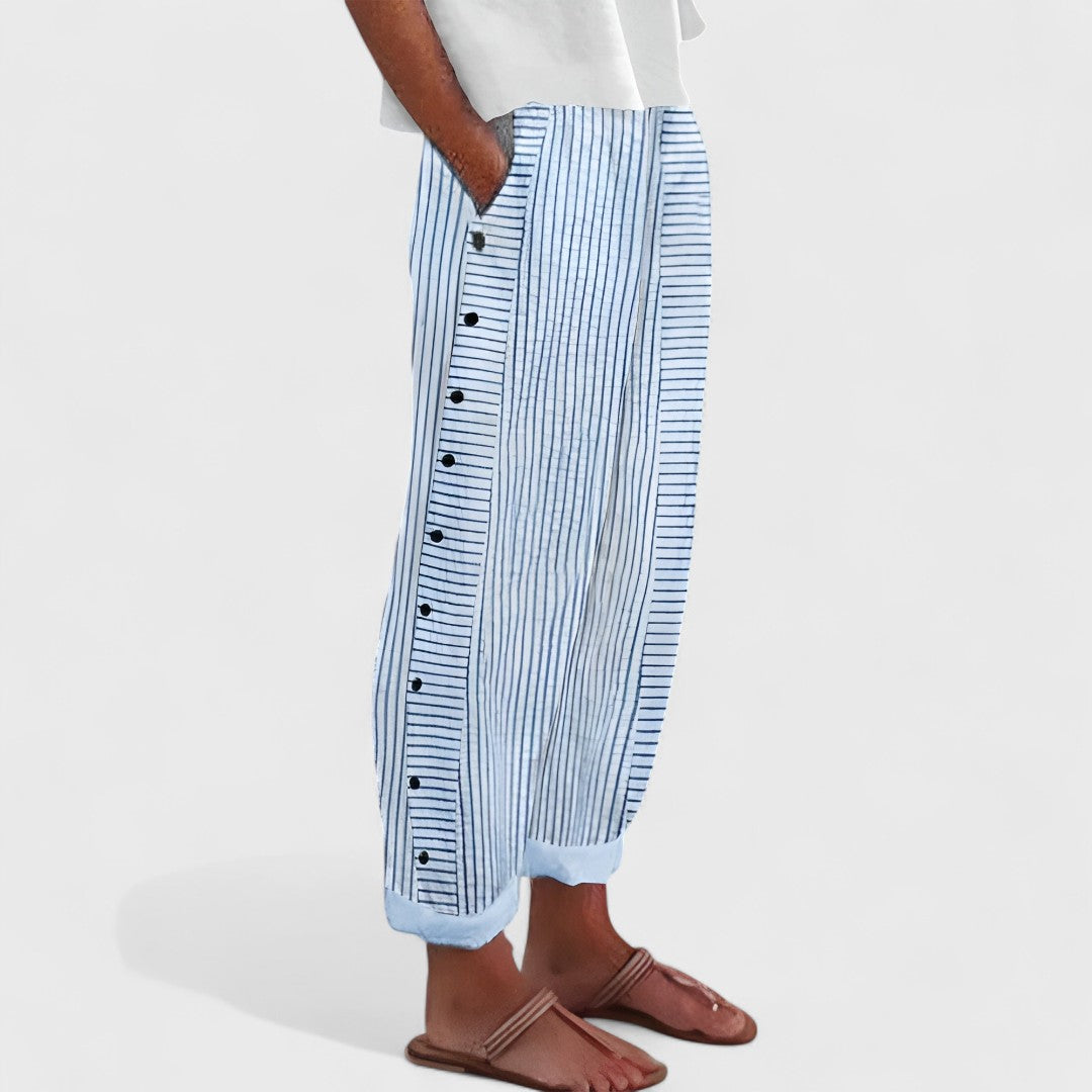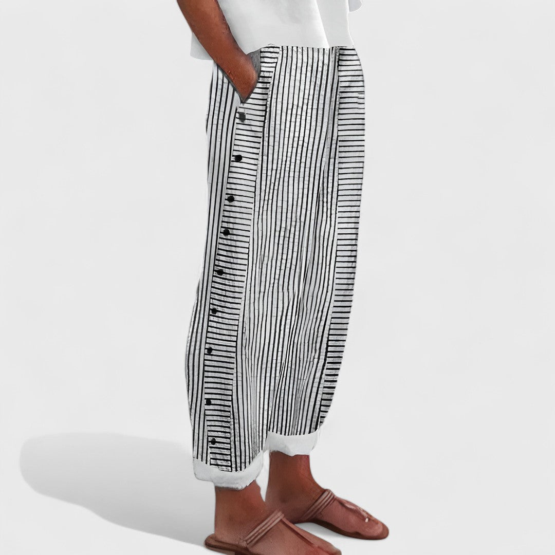 A Vera nadrág finom lenből készült, amely természetes módon hűsít és lélegzik. A laza szabásnak és az elasztikus derékpántnak köszönhetően kényelmet nyújt, miközben stílusosan néz ki – ideális sétákhoz, esti találkozókhoz vagy olyan napokhoz, amikor elegánsan szeretnél kinézni és jól érezni magad.
